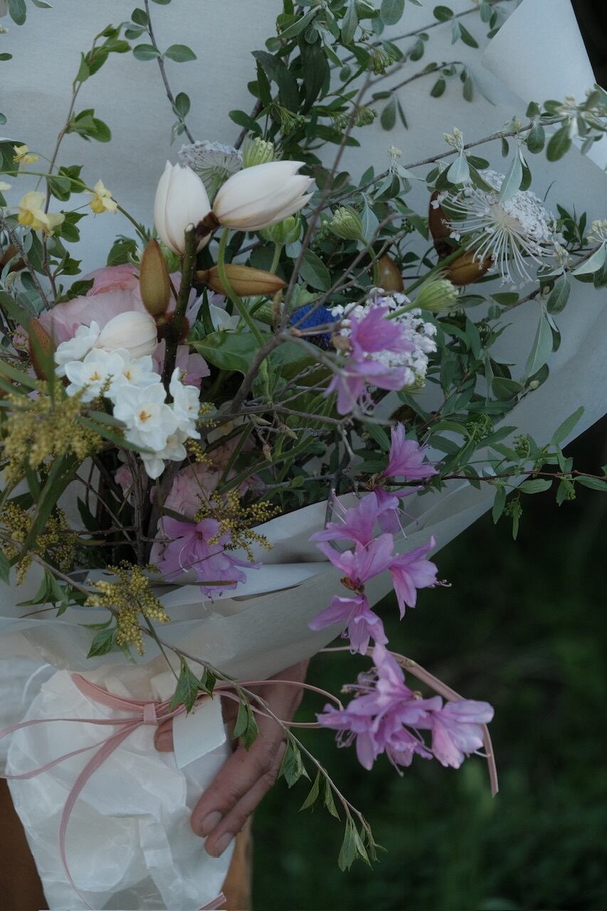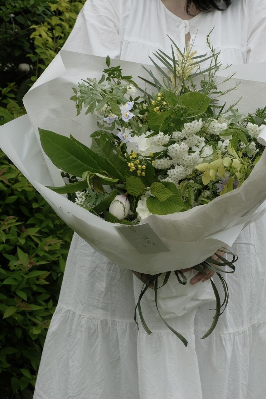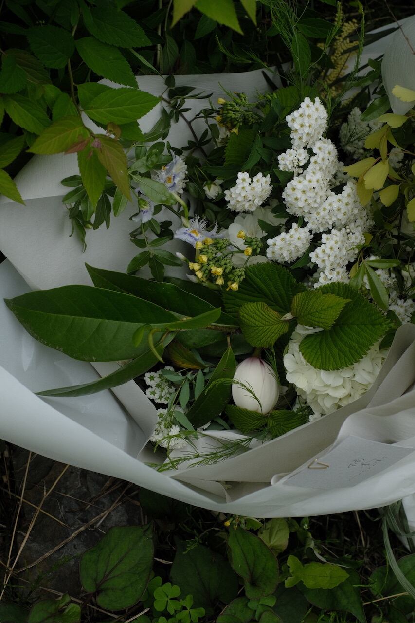 季節のお花、庭や畑、野山の摘みたての草木花、ハーブを束ねた香りのよい花束です。草花が持つ個性や今この季(とき)しか出会えない季節の表情を大切にお作りする世界にひとつだけの贈りものです。