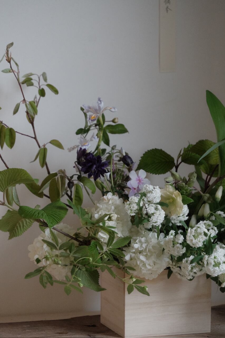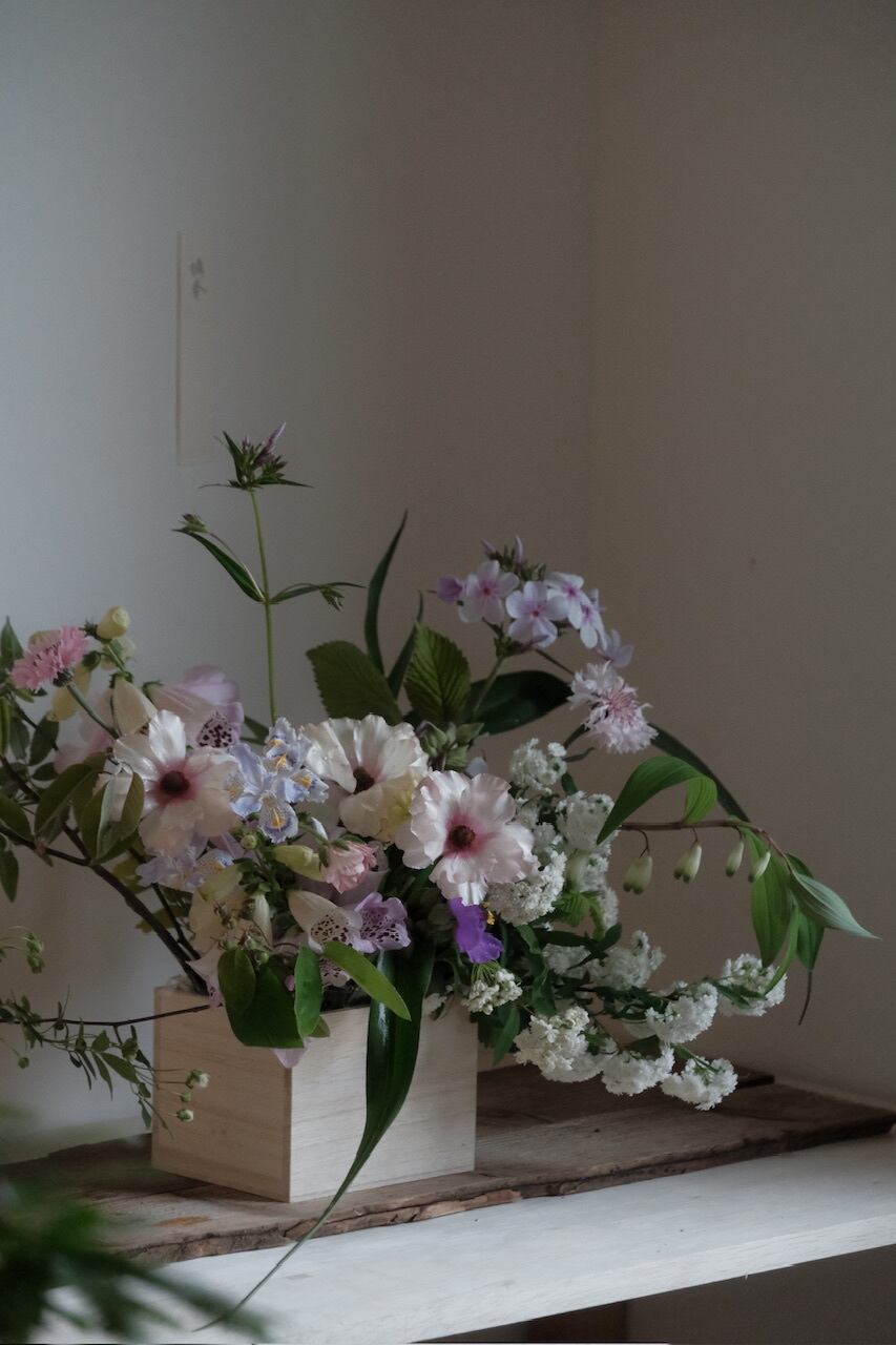 季節のお花、庭や畑、野山の摘みたての草木花、ハーブなどで仕立てるアレンジメントです。草花が持つ個性や今この季(とき)しか出会えない季節の表情を大切にお作りする世界にひとつだけの贈りものです。