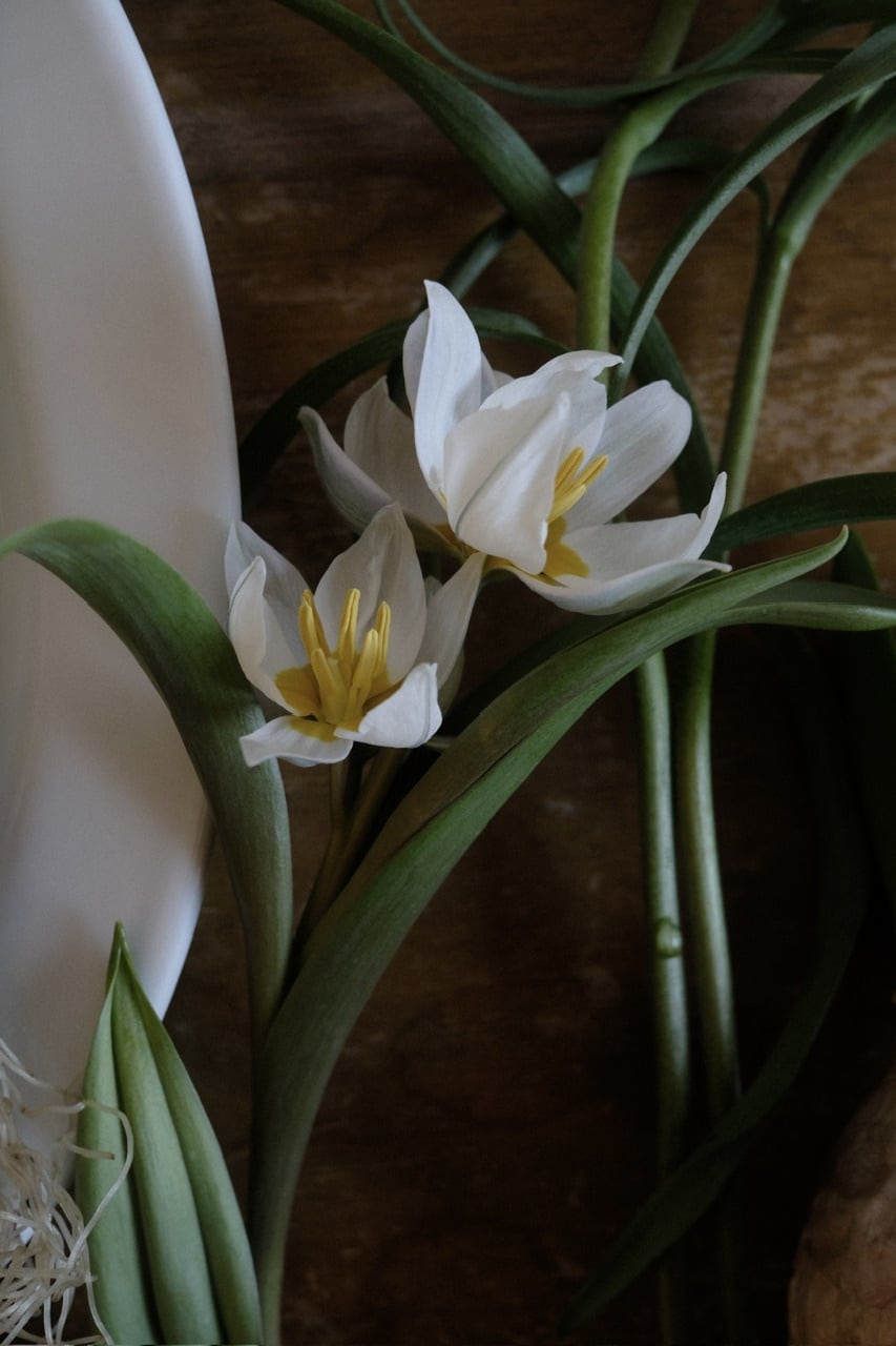 ガラスの器や小さな皿にそっと飾るだけで、お部屋に清らかな春の景色を呼び込みます。